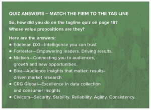 Here are value propositions from several of the larger market research firms. Without electronic help, can you name the firm each statement belongs to?