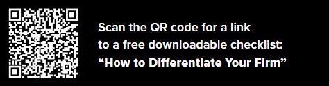 To break free from homogenous industry messaging, you’ll have to narrow in on what your firm does differently that is important to your target clients. So, when was the last time you did market research on yourself? Have you done any qualitative studies with your ideal customers or target audiences? It’s one of the best ways to find what sets you apart. Often, your true differentiator is not what you think it is.