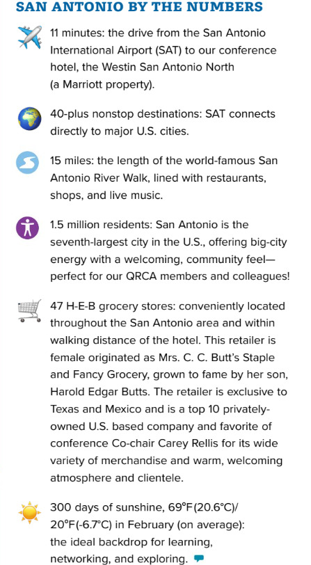 The 2026 QRCA Annual Conference has always been about more than learning—it’s about belonging. We are a community that thrives on curiosity, generosity, and shared discovery. San Antonio will give us the chance to celebrate that spirit in a new way, surrounded by culture, history, and a city that invites conversation around every corner.